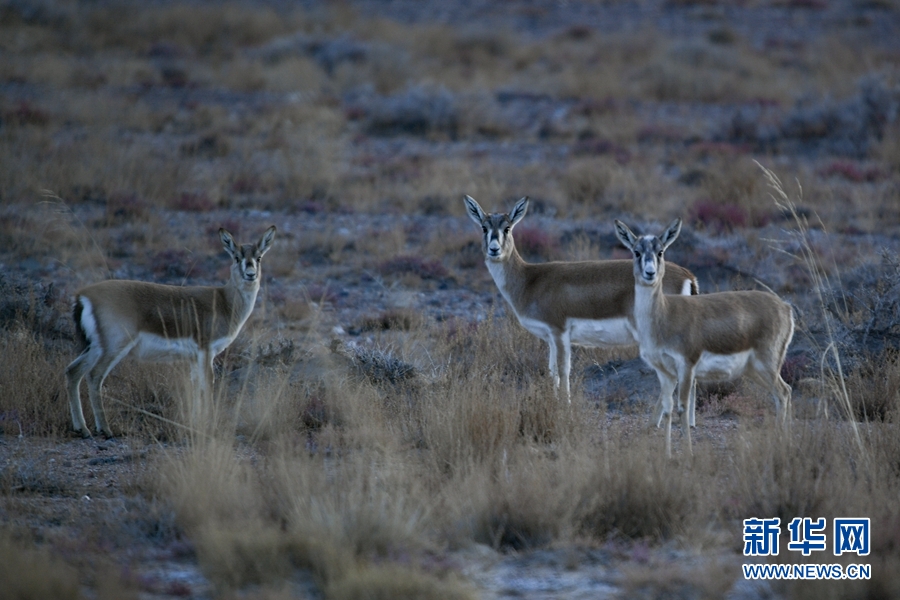 在都蘭湖國家濕地公園內(nèi)拍攝到的鵝喉羚。(11月21日攝)新華網(wǎng) 潘彬彬 攝