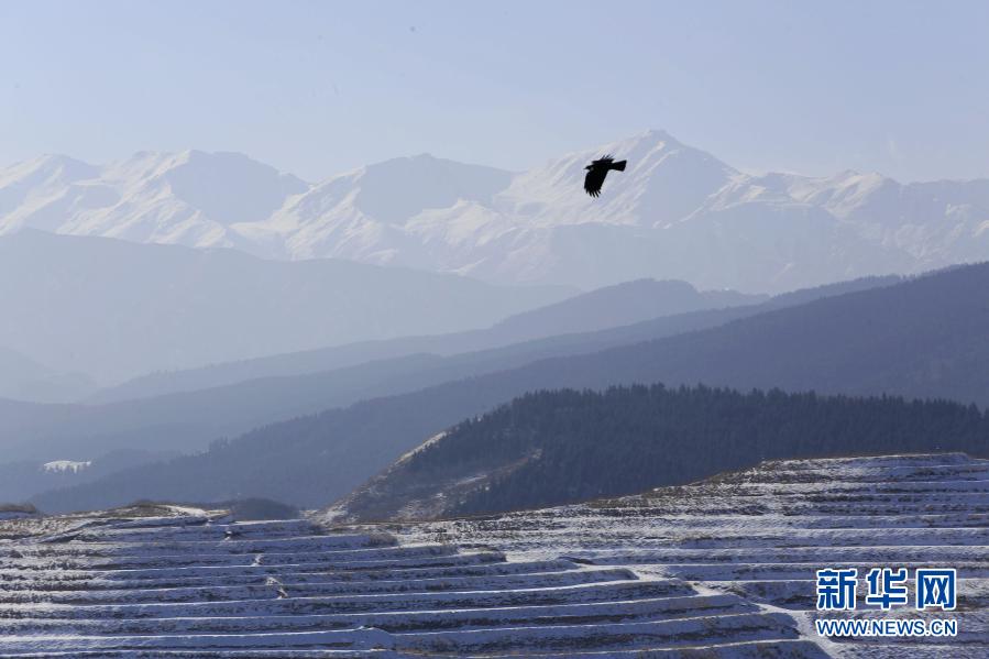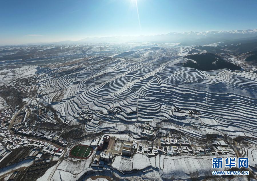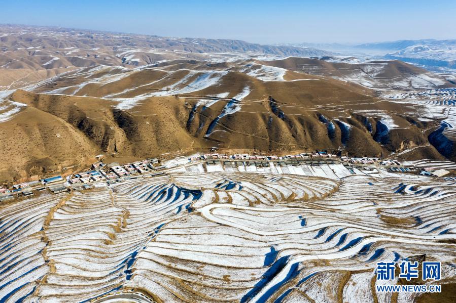 12月7日拍攝的甘肅天祝藏族自治縣大紅溝鎮(zhèn)的梯田雪景(無人機照片)。新華社 姜愛平 攝