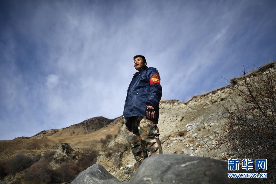 12月8日,祁連山國家公園扎麻什管護站生態(tài)管護員郝生寶在巡護途中。新華社記者 張宏祥 攝