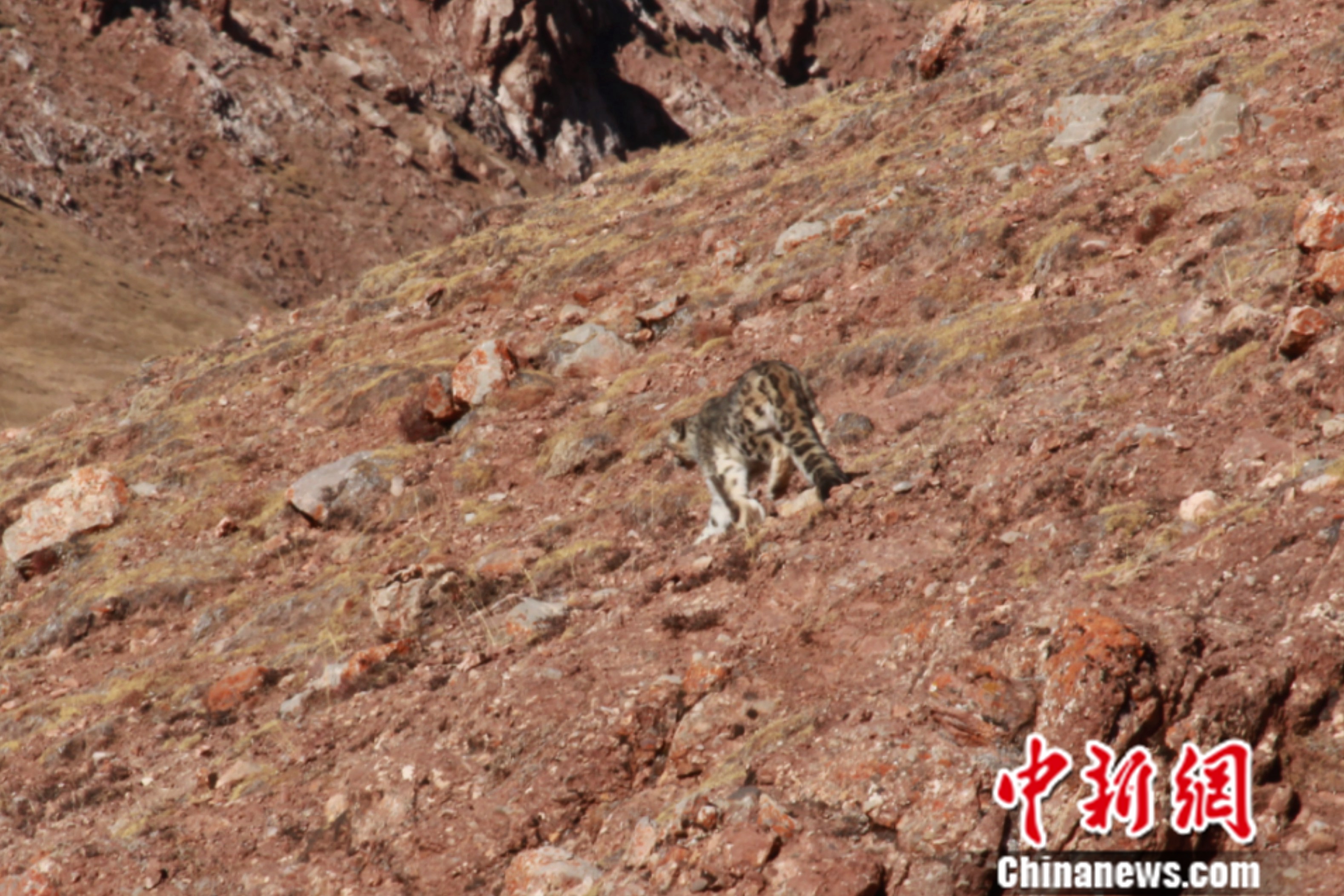 長江源發(fā)現(xiàn)罕見棕黃色雪豹 專家:非雪豹、金錢豹“結(jié)合體”