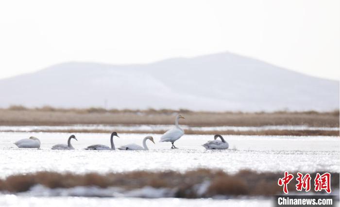 白天鵝飛抵若爾蓋棲息越冬。鄧政琪 攝