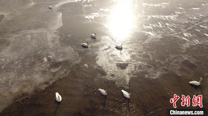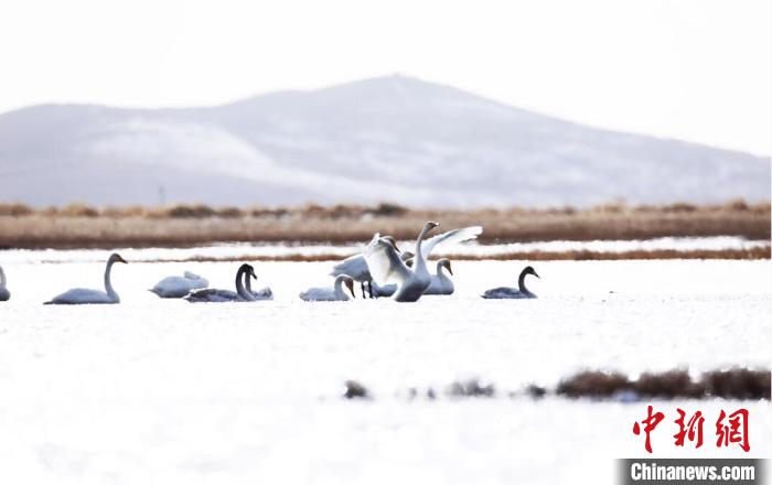 白天鵝飛抵若爾蓋棲息越冬。周林 攝