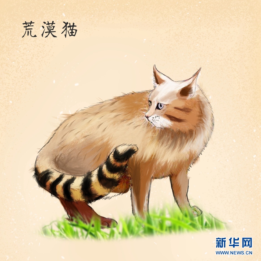 兔猻:國家二級保護(hù)動物。兔猻腳短,毛發(fā)很長、很厚,耳朵位置較低,有一副貌似是貓頭鷹的面容,主要棲息于沙漠、荒漠、草原或戈壁地區(qū),能適應(yīng)高寒的環(huán)境。
