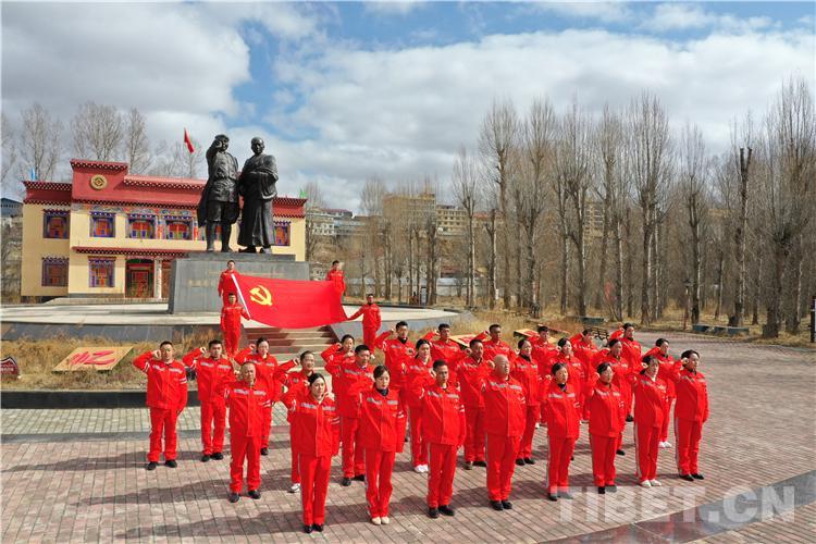 圖為在朱德總司令與五世格達活佛紀(jì)念館前重溫入黨誓詞