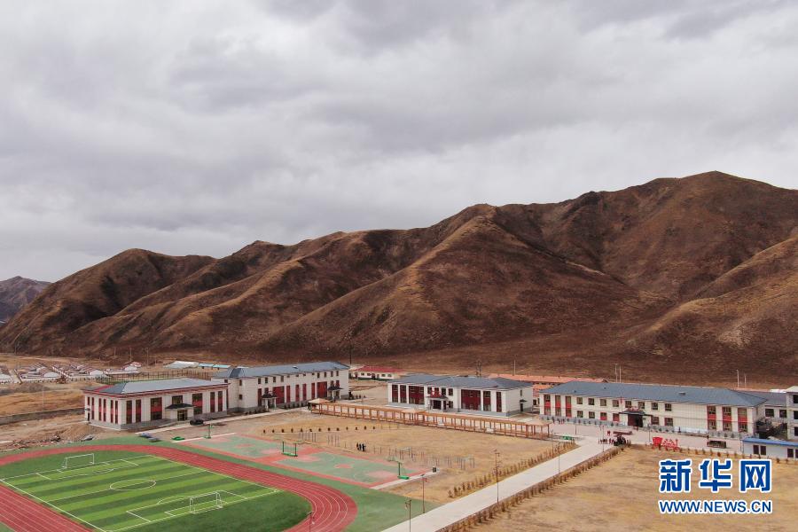 3月17日拍攝的果洛藏族自治州甘德縣下貢麻鄉(xiāng)寄宿制中心小學(xué)(無人機照片)。 新華社記者 張龍 攝