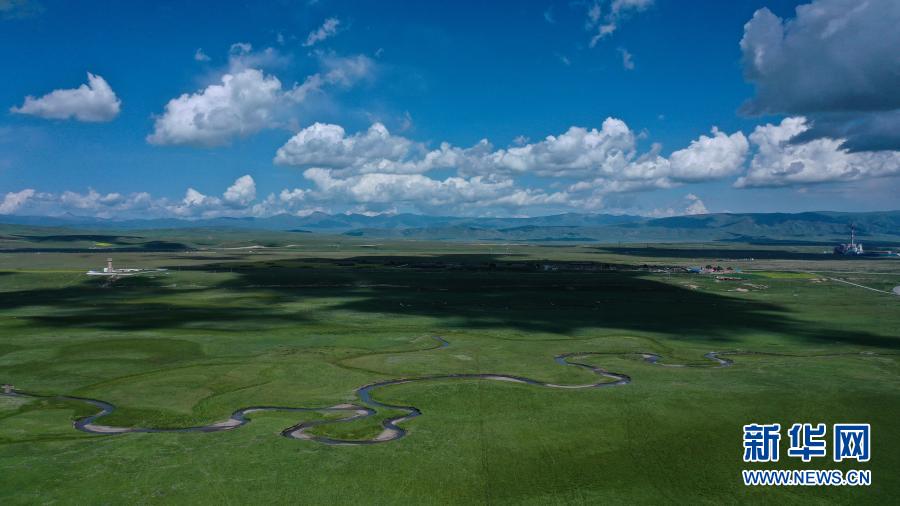 這是2020年7月30日拍攝的金銀灘草原(無人機(jī)照片)。新華社記者 吳剛 攝