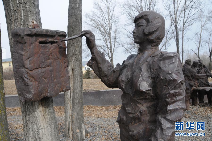 在原子城紀(jì)念園里的這座雕塑,生動再現(xiàn)了那個火熱年代中,一個真實(shí)而感人的故事。