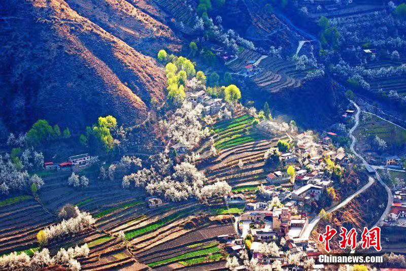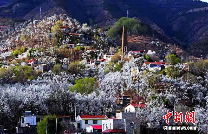 四川省甘孜州丹巴縣:“梨花藏寨”繪就詩意般的春色畫卷