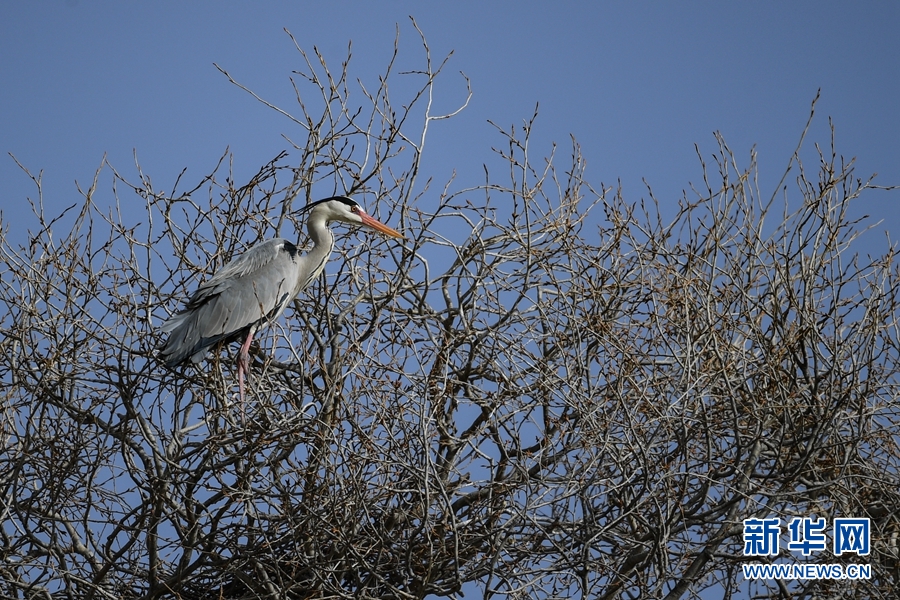 一只蒼鷺站在樹(shù)梢上享受春日暖陽(yáng)。新華網(wǎng) 卡婭梅朵 攝