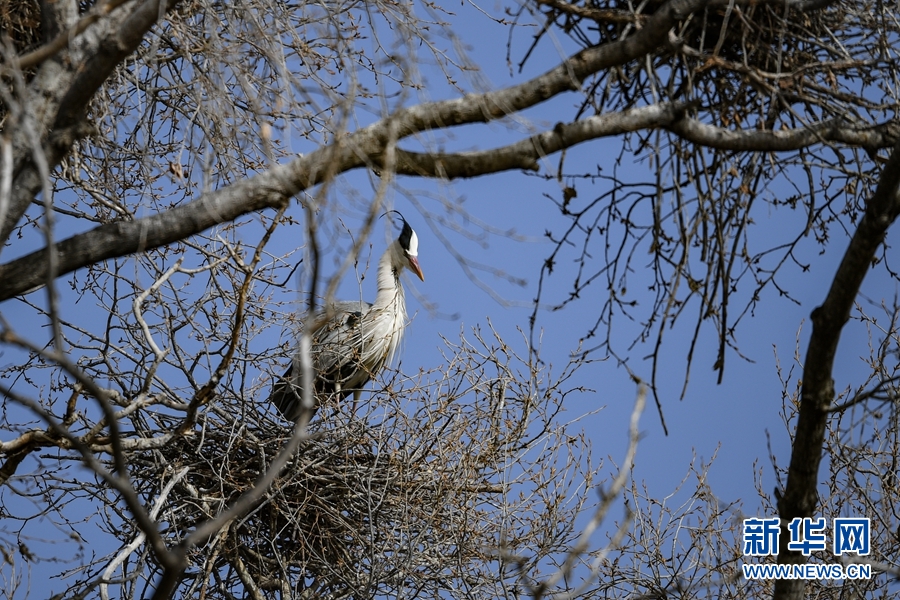 一只蒼鷺在巢穴里棲息。新華網(wǎng) 潘彬彬 攝