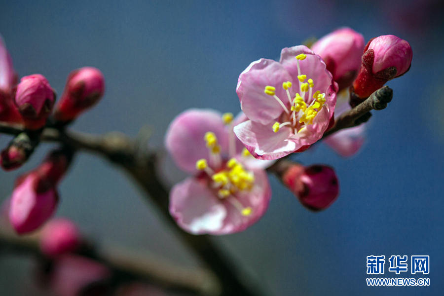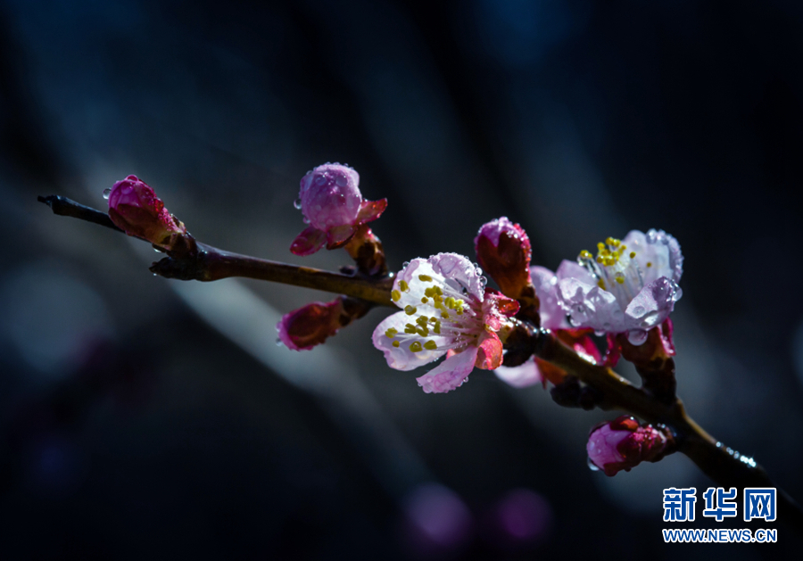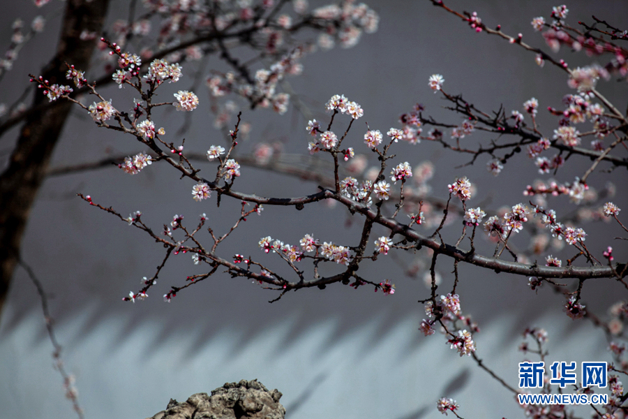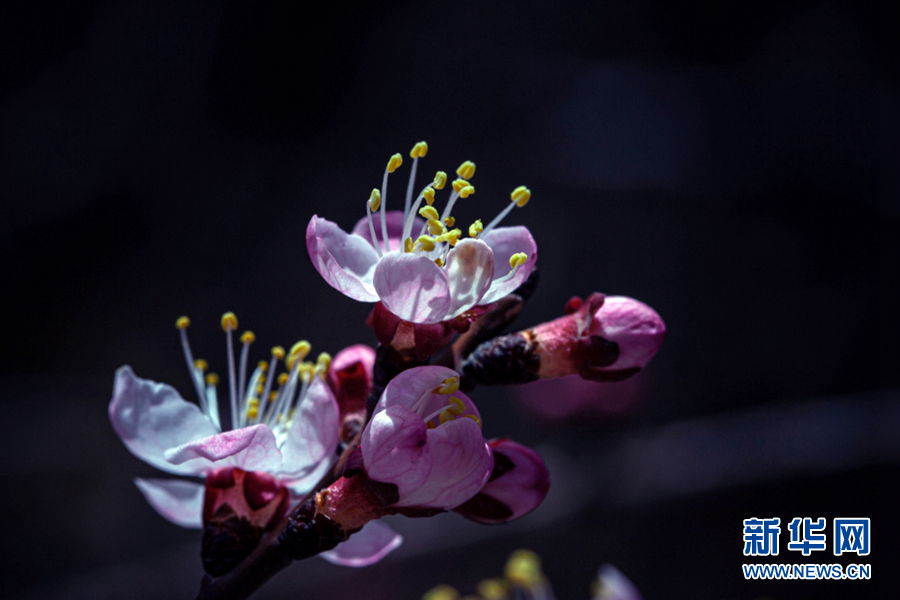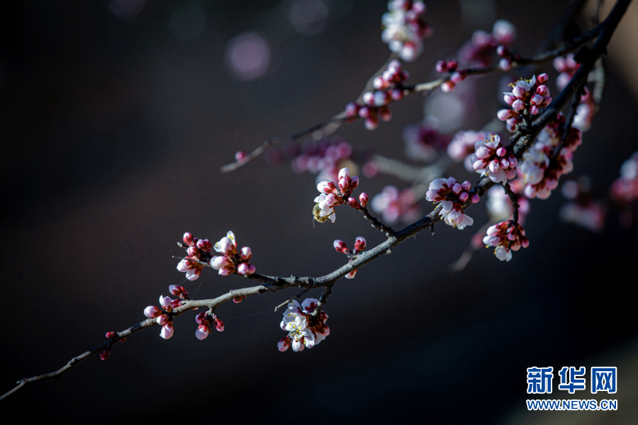 陽(yáng)光照耀下,杏花張開了笑臉,花蕊悄悄地探出了頭。新華網(wǎng) 陳錫明 攝