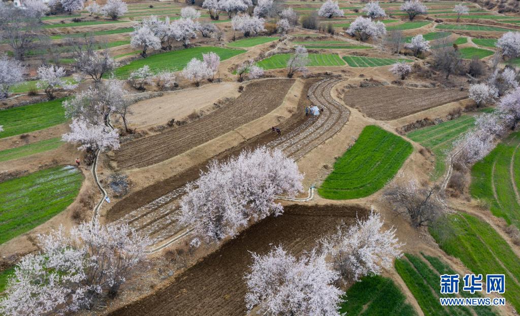 4月3日,在得榮縣白松鎮(zhèn)奪松村,當(dāng)?shù)夭刈迦罕娫诖焊o人機(jī)照片)。新華社記者 江宏景 攝