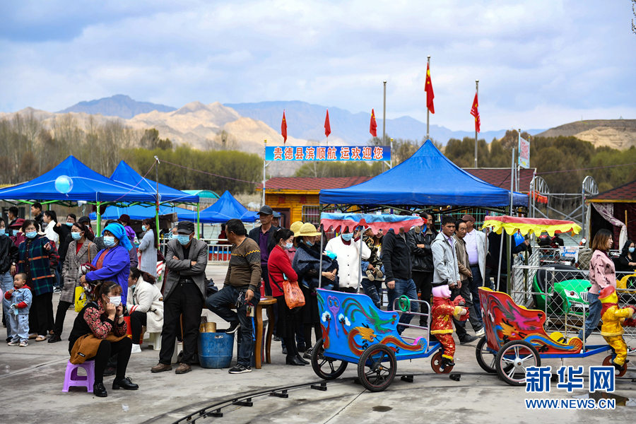 圖為貴德縣水車(chē)廣場(chǎng)的兒童游樂(lè)園。新華網(wǎng) 潘彬彬 攝