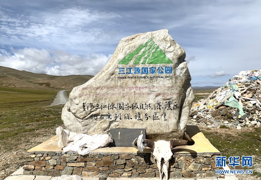 這是位于玉樹州曲麻萊縣境內(nèi)的青海三江源國家級自然保護(hù)區(qū)約古宗列保護(hù)分區(qū)紀(jì)念碑。(2020年8月27日攝)新華社記者 李琳海 攝