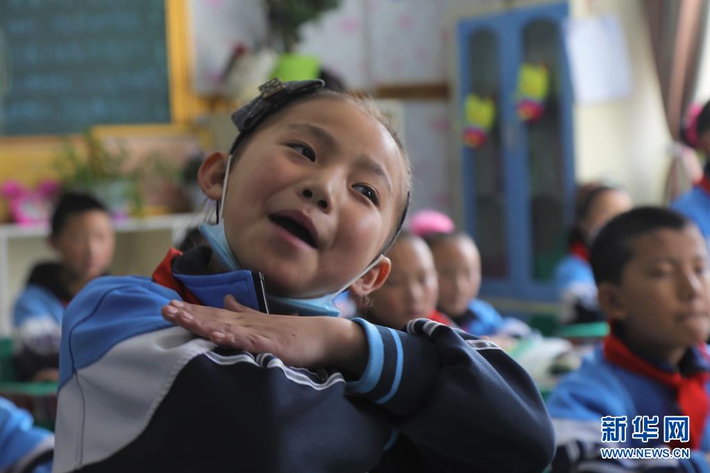青海省玉樹(shù)藏族自治州玉樹(shù)市第三完全小學(xué)的學(xué)生才卓瑪在課堂上(4月12日攝)。新華社記者 趙玉和 攝
