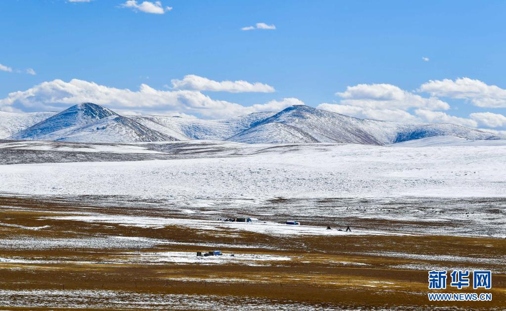 這是在青海省玉樹(shù)藏族自治州稱多縣拍攝的雪后牧場(chǎng)(2020年10月29日攝)。新華社記者 張龍 攝