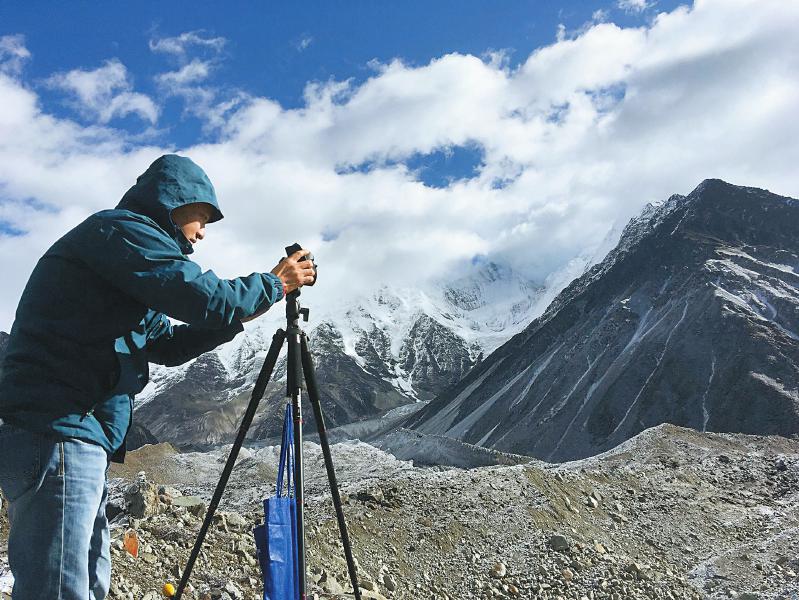 劉巧在貢嘎山西坡拍攝測量冰川。本版圖片均由受訪者提供