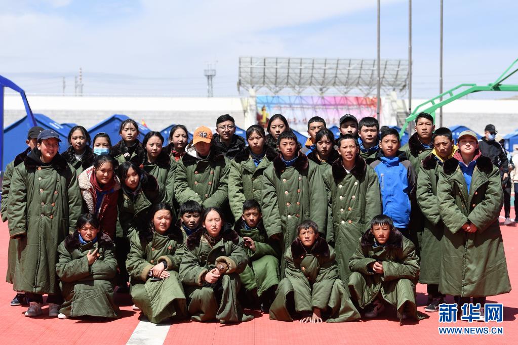5月24日,瑪多縣民族寄宿制中學(xué)的師生們參加升旗儀式。當(dāng)日,青海省果洛藏族自治州瑪多縣學(xué)生復(fù)課。(無人機(jī)照片) 中新社記者 馬銘言 攝