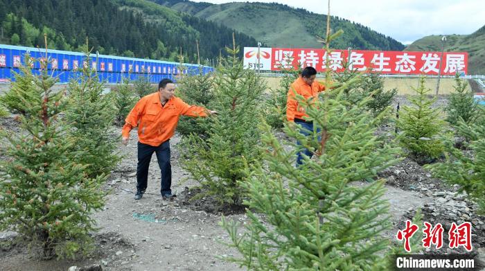 記者在試驗(yàn)基地現(xiàn)場(chǎng)看到,因施工開挖的草甸被切割成正方形,整齊堆放在一起,通過(guò)噴淋系統(tǒng)不時(shí)澆水。一旁的表土養(yǎng)護(hù)及苗木驗(yàn)證試驗(yàn)基地上,因施工開挖的表土也被集中堆放、攤平,經(jīng)過(guò)營(yíng)養(yǎng)培育后,栽種了白樺、冷杉、側(cè)柏、高山柳等多種高原樹木。