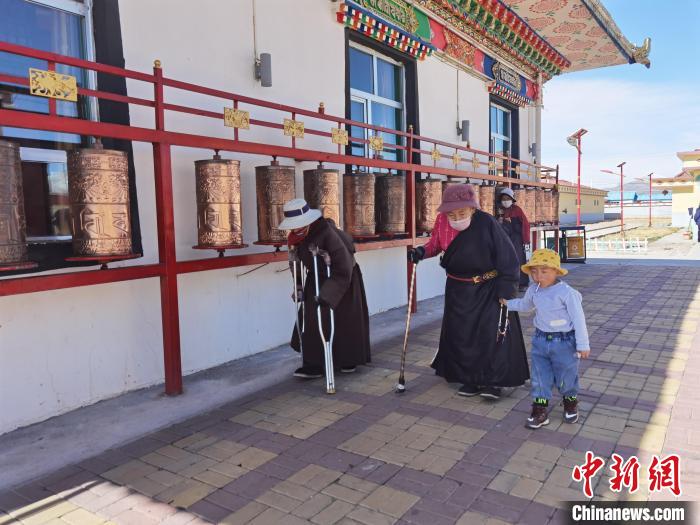 上午十點,長江源頭的青海玉樹治多縣幸福敬老院內(nèi),陽光靜靜普照小廣場,金色轉經(jīng)筒邊身著藏袍的老人彎腰拄拐,牽著吃糖的孩子悠悠踱步,遠處皚皚雪山起伏。