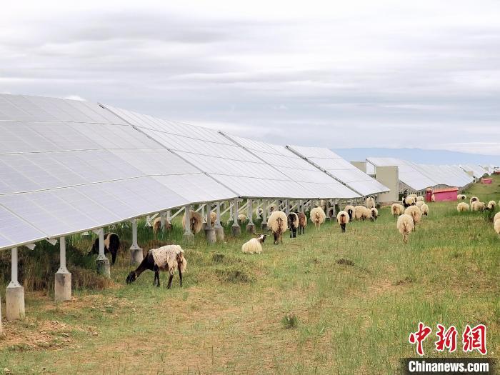 “光伏電站建設(shè)在這里,成批量鋪設(shè)的光伏板使得園區(qū)風(fēng)速減小,蒸發(fā)量下降,空氣濕度增加,草地涵水量大增,在一定程度上遏制了荒漠化的擴大延伸?!?7日,青海省海南藏族自治州塔拉灘光伏產(chǎn)業(yè)園區(qū)的工作人員對記者說。