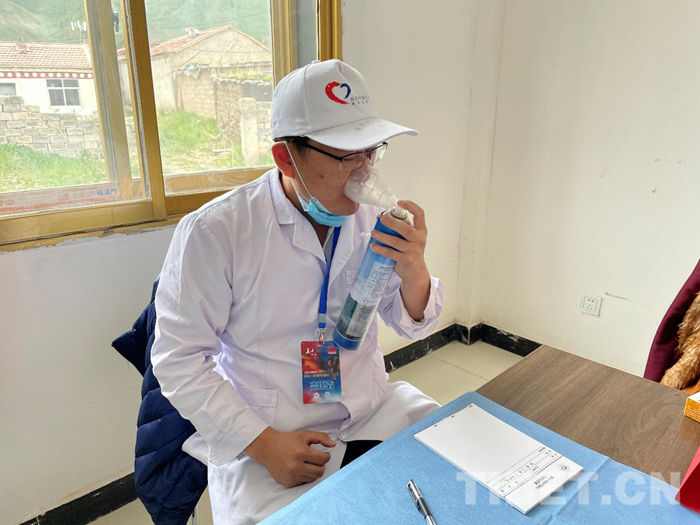 圖為石少輝大夫在吸氧(組委會供圖)