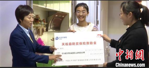 圖為天祝縣首批理賠的“防貧?!辟Y金到位。天祝縣委宣傳部供圖