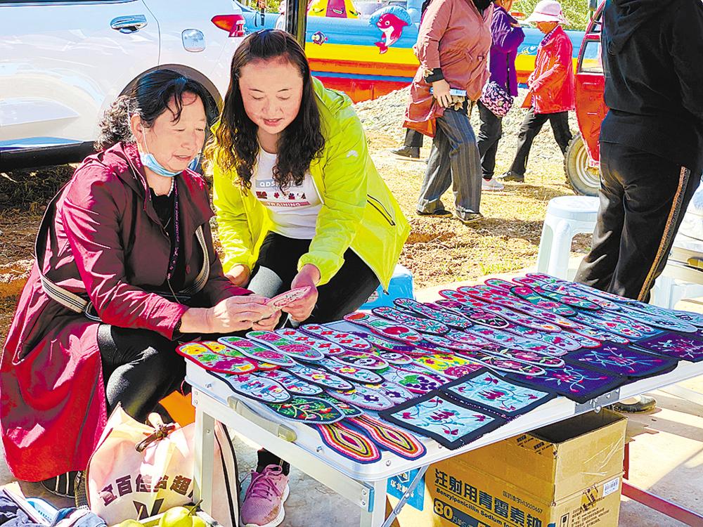游客正在購買當(dāng)?shù)靥厣止に嚻?。欒雨?攝