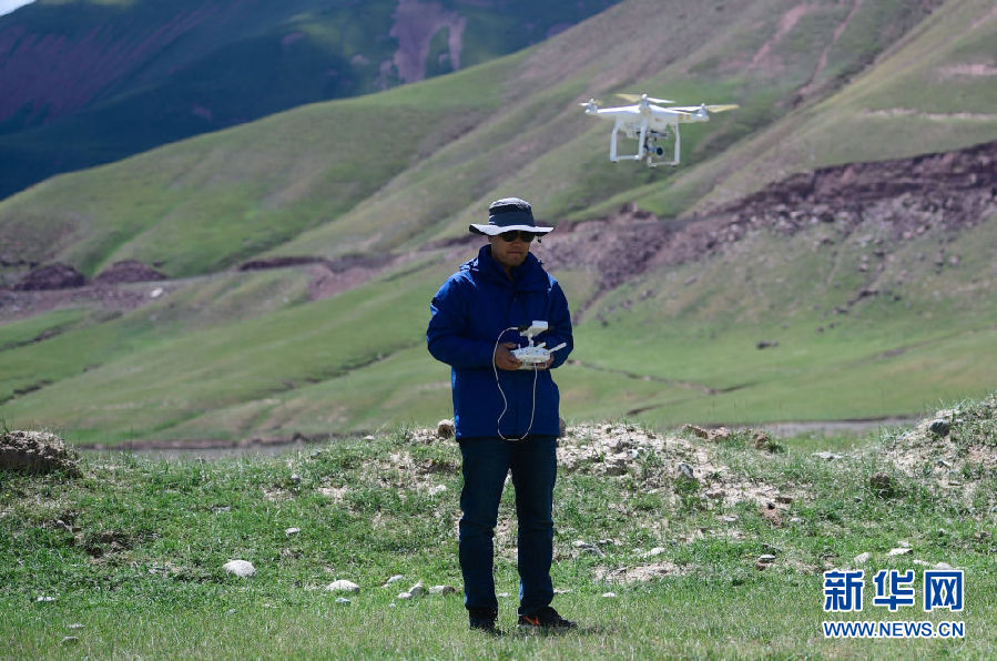 2021年長江源綜合科考的科考隊員趙保成在使用無人機觀測長江源地區(qū)生態(tài)環(huán)境(7月24日攝)。新華社記者 張龍 攝