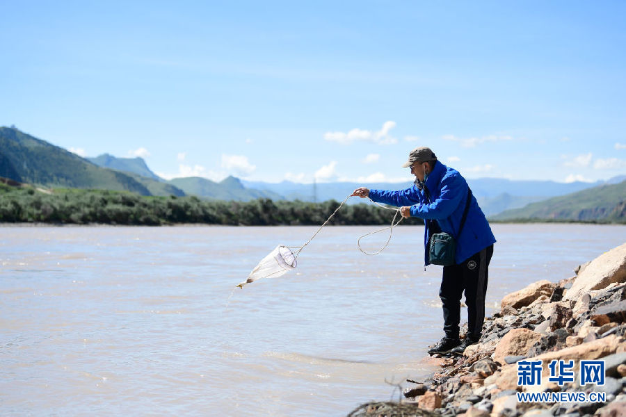 2021年長江源綜合科考的科考隊員殷大聰在采集浮游生物(7月22日攝)。新華社記者 張龍 攝