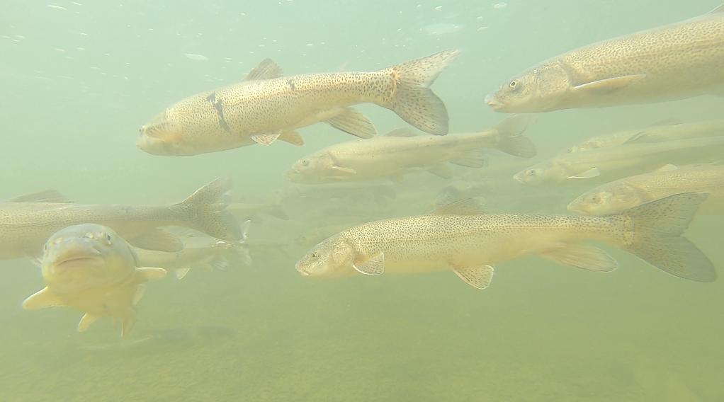 這是在長(zhǎng)江源使用水下相機(jī)拍攝的自然條件下小頭裸裂尻魚(yú)繁殖群體。