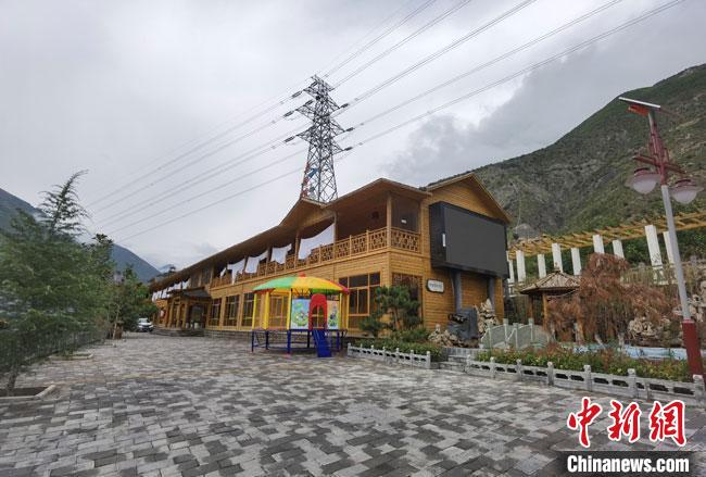 沿著村道蜿蜒而上,數(shù)十間采用藏族傳統(tǒng)木制結(jié)構(gòu)建筑與裝飾的房屋造型精致,環(huán)境典雅。這些房屋采用當(dāng)?shù)貍鹘y(tǒng)的石頭建筑形制,木屋用繁花綠樹(shù)做視野上的隔斷,又用十六座小橋彼此連通,似隔非隔,似連非連,既自成一體,又融會(huì)貫通,兼之流水潺潺,呈現(xiàn)出一派舒適宜人的田園畫卷。