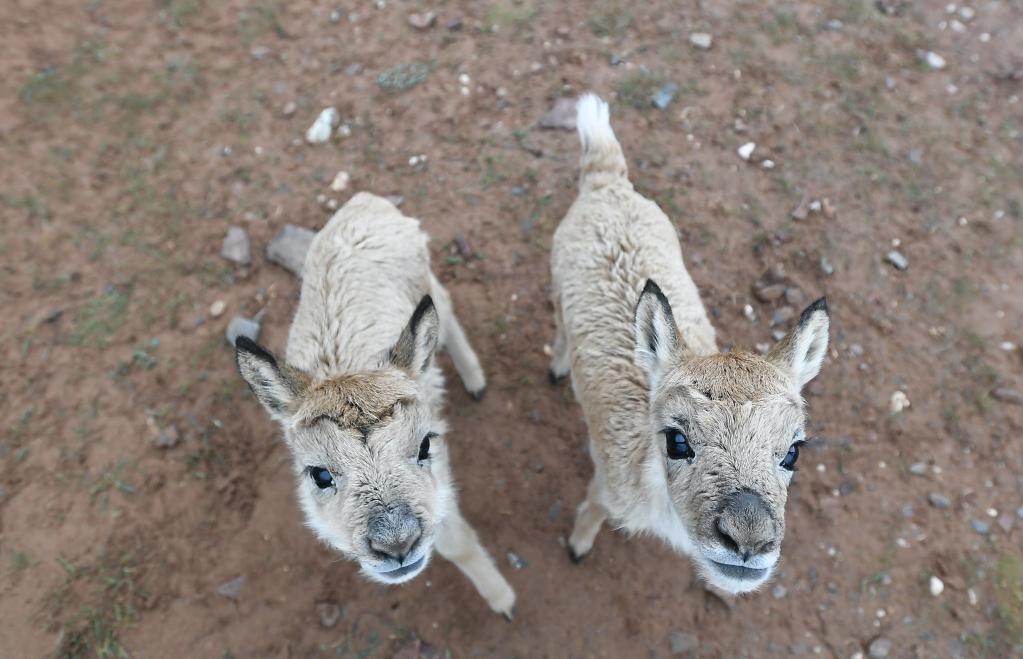 2020年7月7日在三江源國(guó)家公園管理局長(zhǎng)江源園區(qū)可可西里管理處卓乃湖保護(hù)站拍攝的藏羚羊幼仔。新華社記者薛玉斌 攝
