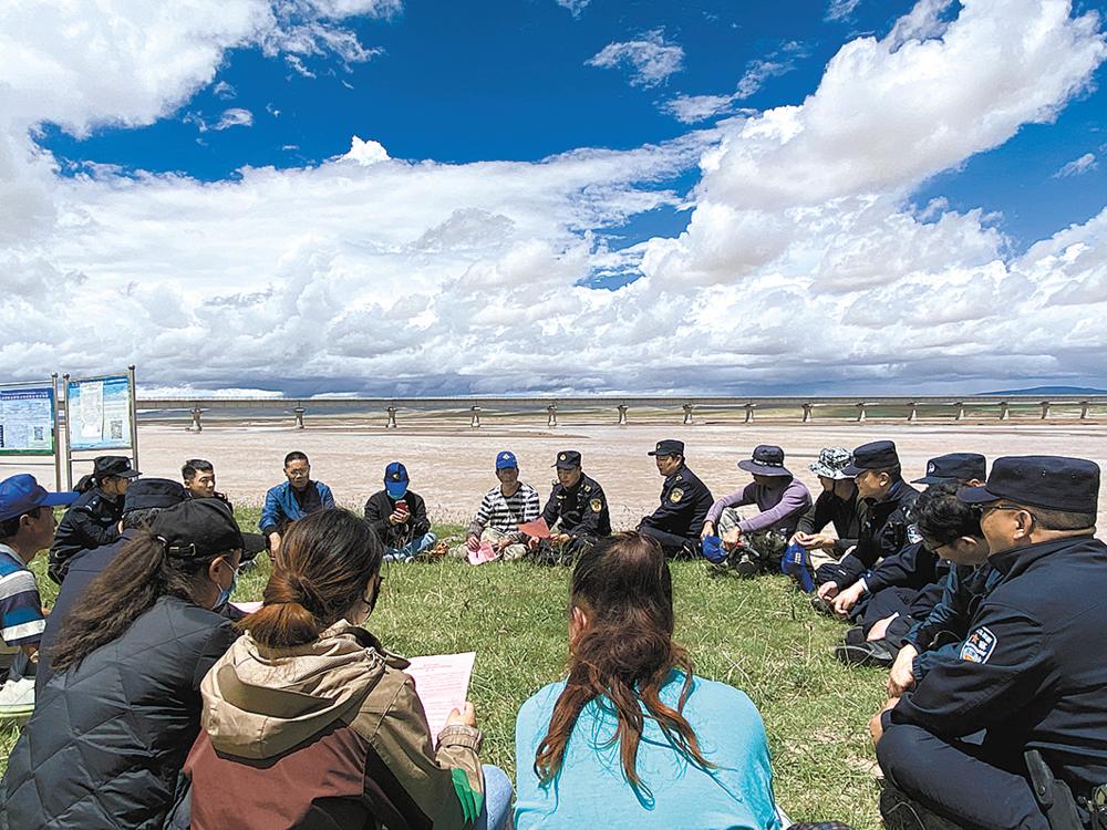多部門聯(lián)合協(xié)作的網(wǎng)格化管理體系,為唐古拉山鎮(zhèn)沱沱河的長(zhǎng)江禁捕工作筑起了一道堅(jiān)實(shí)防線。2020年12月,唐古拉山鎮(zhèn)人民政府結(jié)合河湖長(zhǎng)制工作,與唐古拉山鎮(zhèn)派出所、鎮(zhèn)森林公安局派出所協(xié)商,制定了“一河一警長(zhǎng)”工作機(jī)制。唐古拉山鎮(zhèn)派出所民警周治安說(shuō):“為加強(qiáng)河湖及魚(yú)類資源保護(hù)的執(zhí)法保障,我們要做到每條河流有人巡查,每個(gè)河段有人管理,四天左右都會(huì)巡查一次,通過(guò)內(nèi)外協(xié)作配合,形成強(qiáng)大工作合力,有效打擊了涉水違法行為,也構(gòu)建起長(zhǎng)江禁捕管理工作的長(zhǎng)效機(jī)制。”