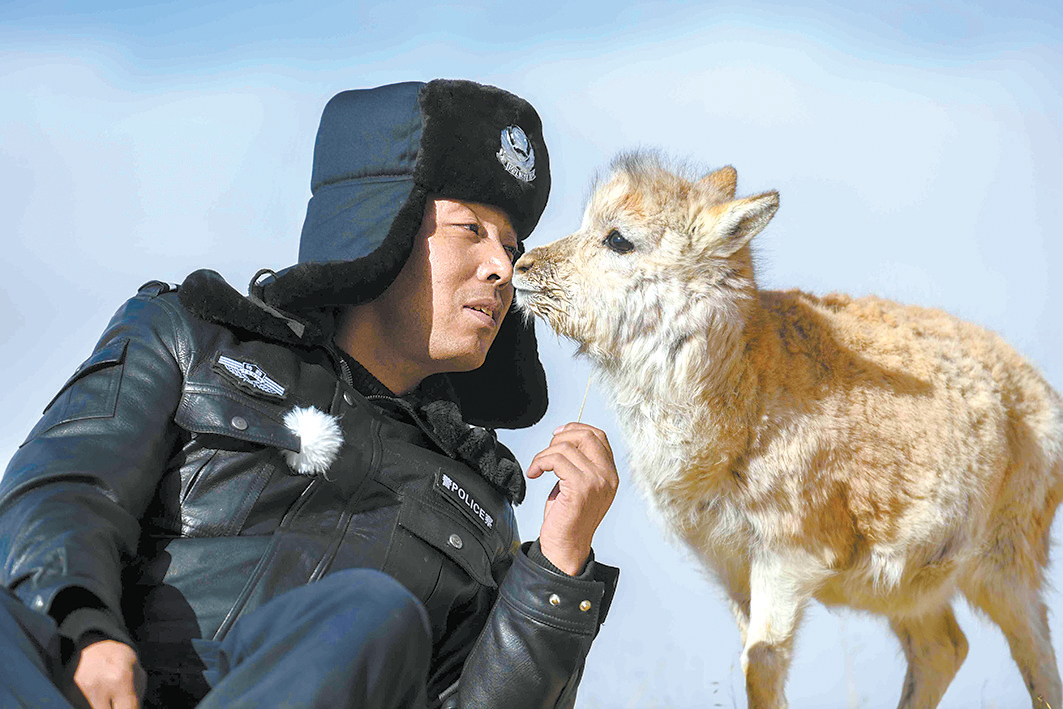 天上的措池,老村支書然西尕瑪望著漸行漸遠的藏羚羊群。