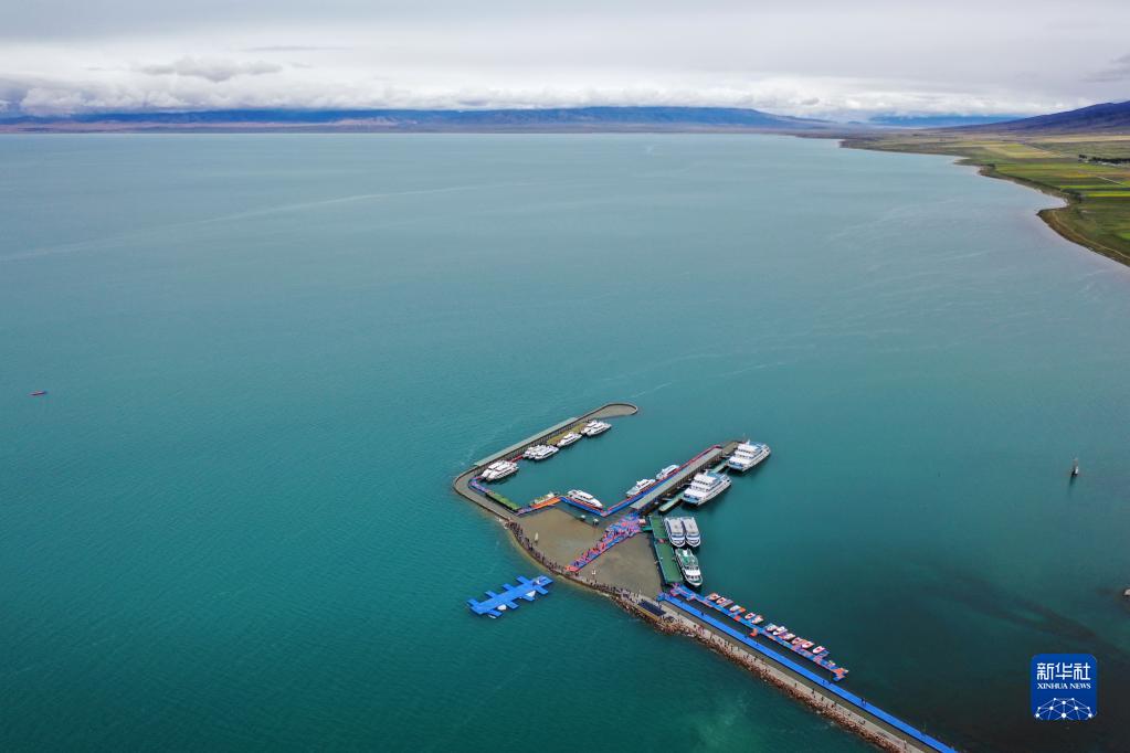這是9月15日拍攝的青海湖上停泊的船只(無人機(jī)照片)。新華社記者 邢廣利 攝