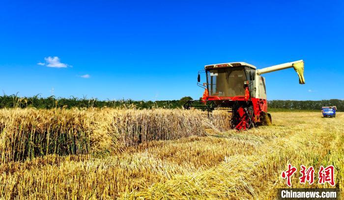 圖為收割機正在麥田收割。宗布爾 攝