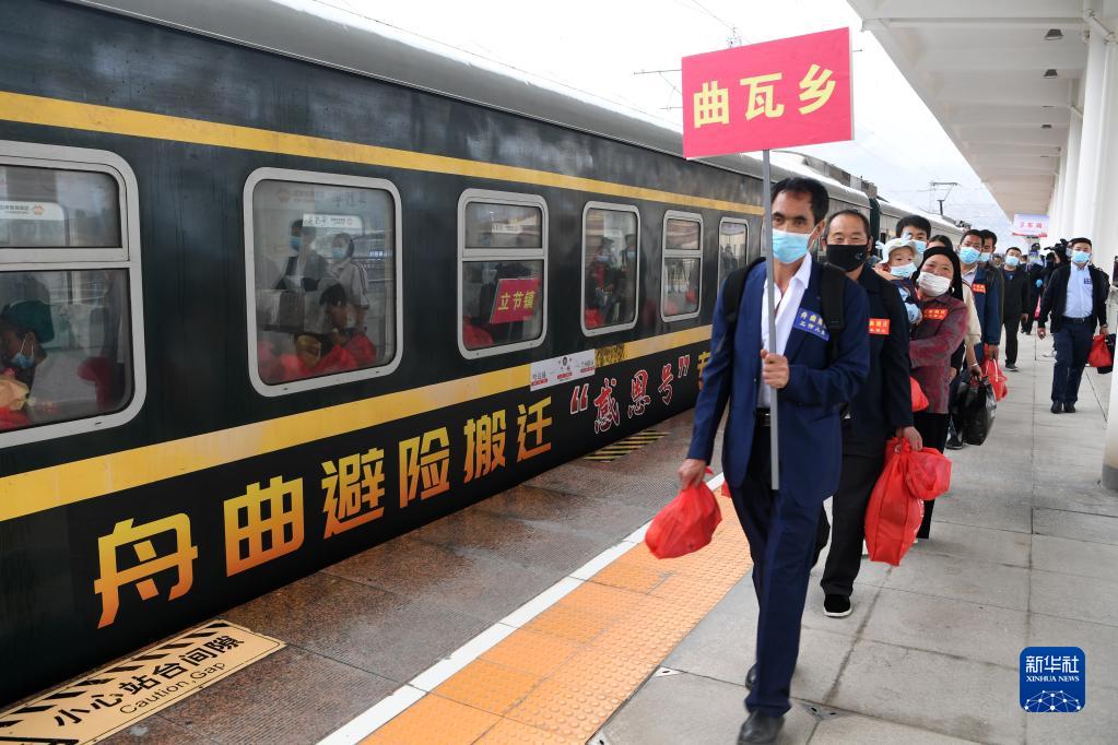 當(dāng)日,甘肅省甘南藏族自治州舟曲縣9個鄉(xiāng)鎮(zhèn)的200戶500余名居民乘坐中國鐵路蘭州局集團(tuán)有限公司開行的舟曲避險搬遷“感恩號”專列前往蘭州新區(qū)安家。據(jù)介紹,今年以來,甘肅省啟動舟曲縣地質(zhì)災(zāi)害避險搬遷工作,計劃年底前搬遷770戶2960人到蘭州新區(qū)安家,此次搬遷的200戶居民是首次借助鐵路專列運(yùn)輸形式實施搬遷。