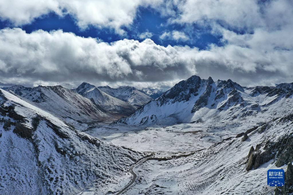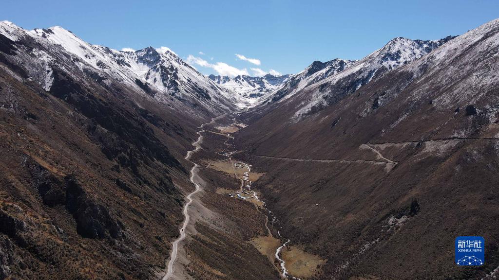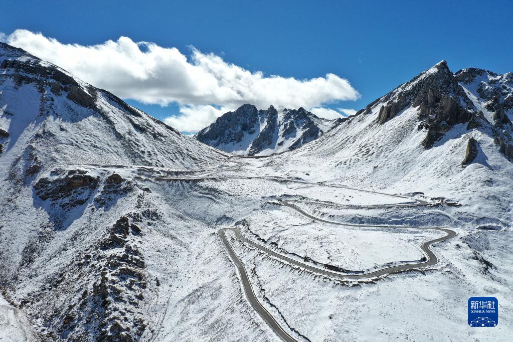 這是四川省甘孜藏族自治州巴塘縣境內(nèi)的通往藏巴拉雪山埡口的公路(10月23日攝,無人機照片)。新華社記者 劉坤 攝