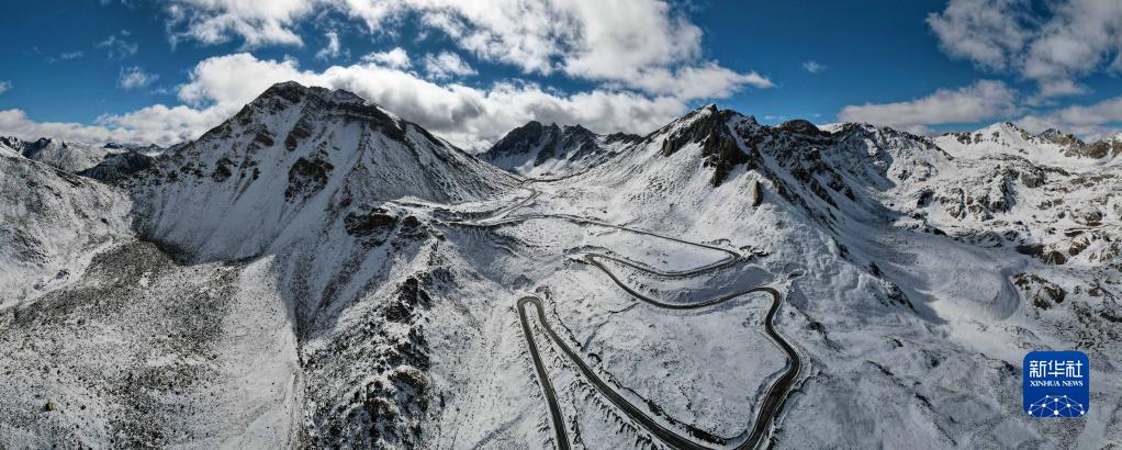 這是四川省甘孜藏族自治州巴塘縣境內(nèi)的通往藏巴拉雪山埡口的公路(10月23日攝,無人機全景照片)。新華社記者 胥冰潔 攝