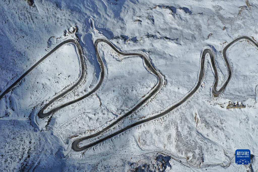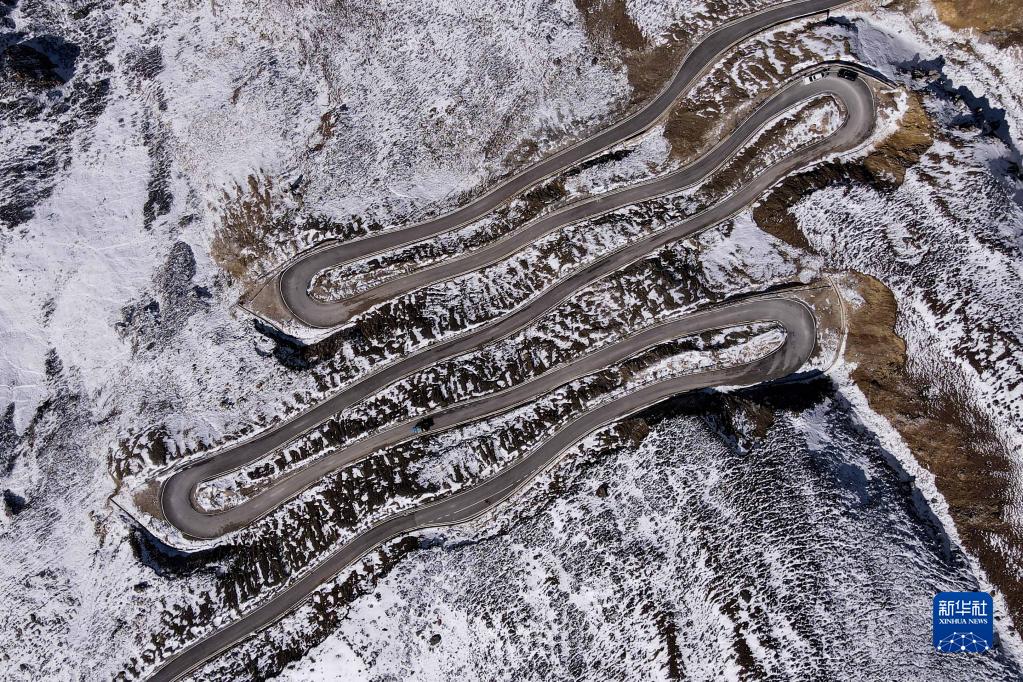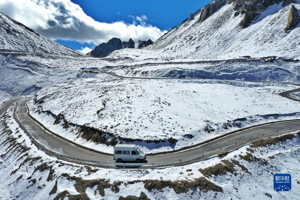 這是四川省甘孜藏族自治州巴塘縣境內(nèi)的通往藏巴拉雪山埡口的公路(10月23日攝,無人機照片)。新華社記者 胥冰潔 攝