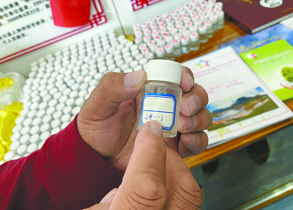 巴洪加羅展示監(jiān)測(cè)水源時(shí)所取的水樣。李慶玲 攝