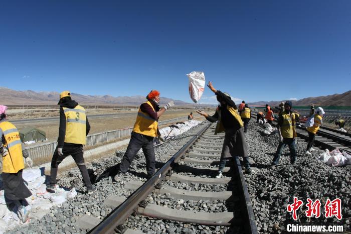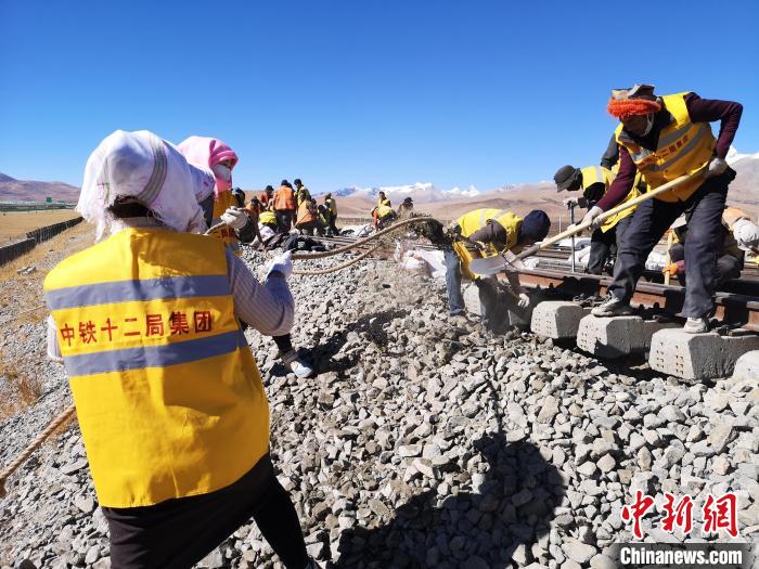 圖為工人在達瓊果站搬運新砟。中鐵十二局集團鐵路養(yǎng)護公司當雄車間供圖