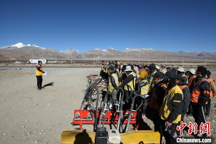 圖為當雄車間主任郝二小在班前會上技術交底。中鐵十二局集團鐵路養(yǎng)護公司當雄車間供圖
