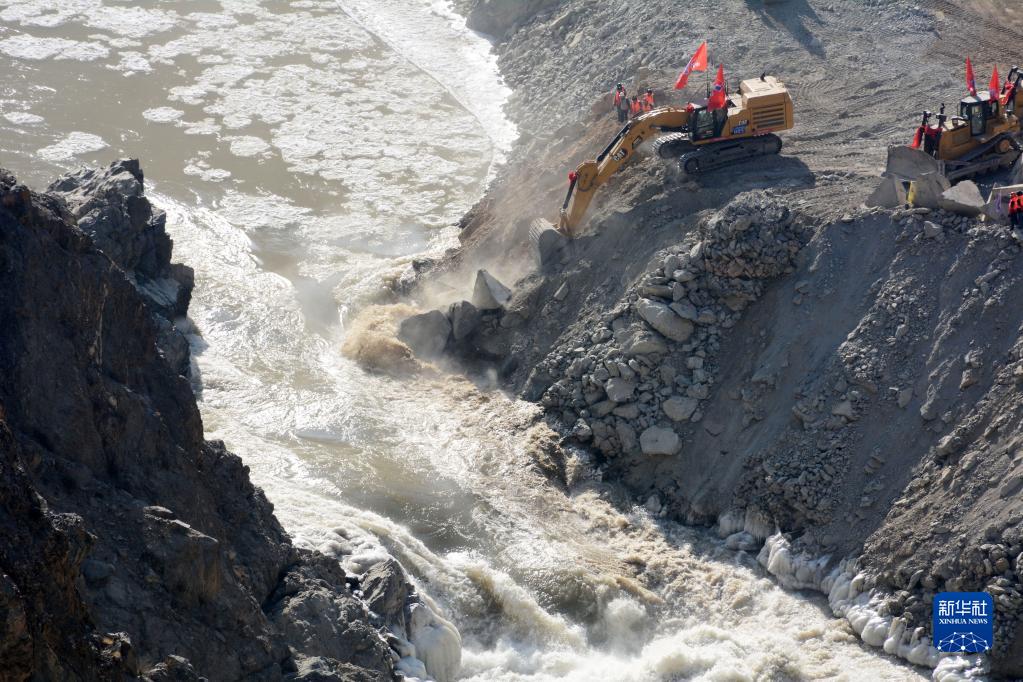 12月26日,在青海省海南藏族自治州興海縣,隨著一塊塊鋼筋混凝土四面體瀉入黃河,黃河羊曲水電站主河床截流工程啟動,標(biāo)志著黃河羊曲水電站正式進(jìn)入主體工程施工階段。新華社記者 柳澤興 攝
