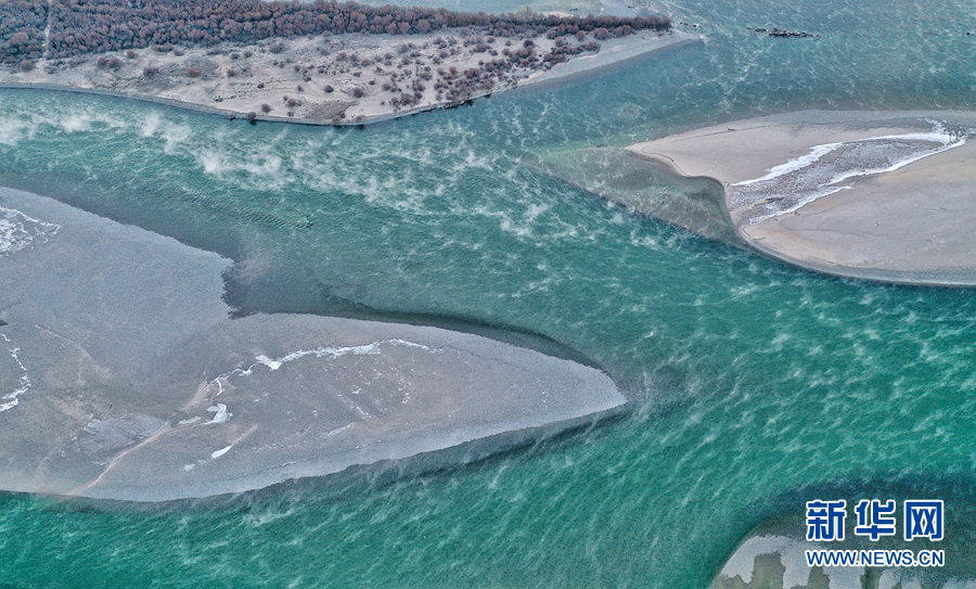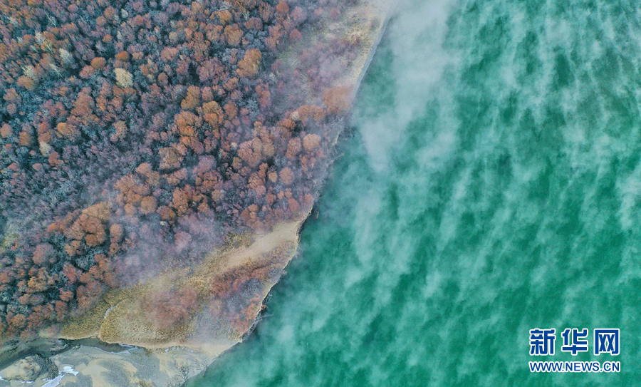 1月2日無人機(jī)拍攝的貴德縣千姿湖濕地公園。新華網(wǎng) 宋忠勇 攝