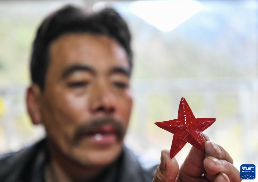 80多年前,紅軍來到村里一片草壩處安營(yíng)扎寨。百姓給紅軍提供酥油、菌子,還有的給紅軍做飯。紅軍離開時(shí)給村里留下幾頂帽子。“擁有五角星帽子的都是德高望重的人,大家覺得五角星很好看,開始自己做,五角星逐漸在村里流行起來?!贝妩h支部書記白瑪扎西說。