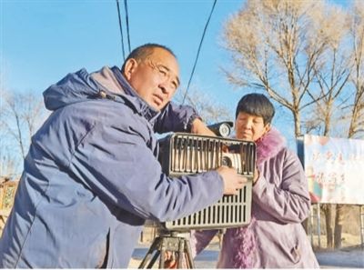許國強、馬玉梅夫婦在調試電影放映設備。