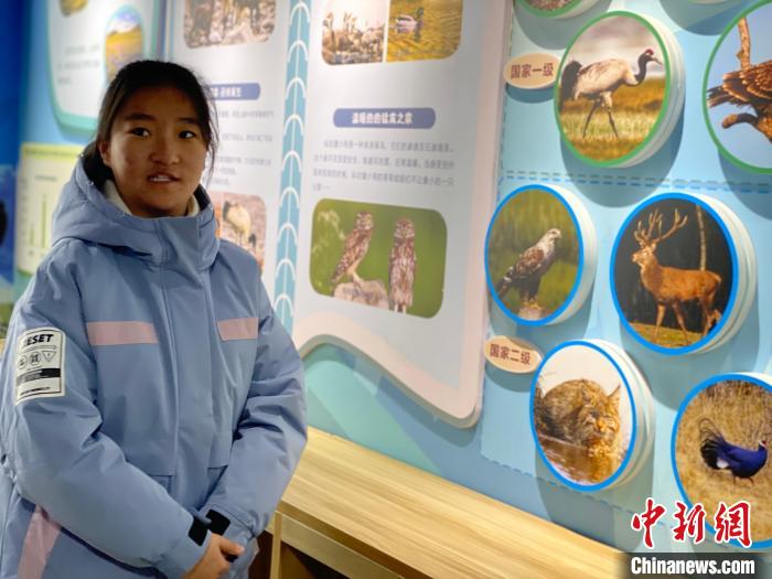 圖為多杰吉在祁連山國家公園生態(tài)學(xué)校自然教室為參觀者進(jìn)行講解。李江寧 攝
