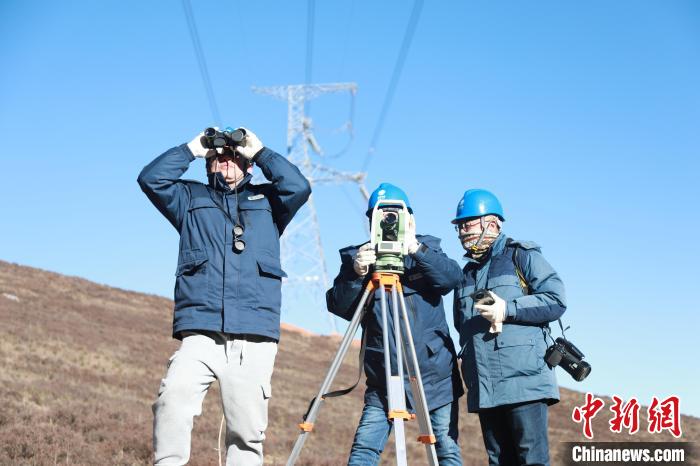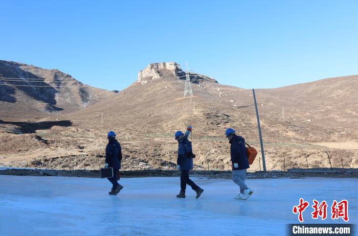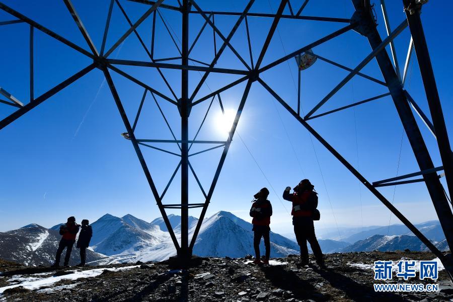 圖為國(guó)網(wǎng)青海檢修公司輸電運(yùn)檢人員李承鴻、楊濤、梁威對(duì)750千伏拉寧線開展春節(jié)前特巡。朱毅然 攝